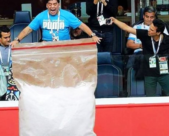 But the infamous Hand of God was not what marked him out as a dishonest rogue. That particular caper was street urchin, crafty sportsmanship at a push and no more sinister than any routine pro-baller chicanery. The cheat moniker is however rightly earned through being coked off his tits for the last 15 years of his career and covering it up by squirting piss through a plastic pecker.